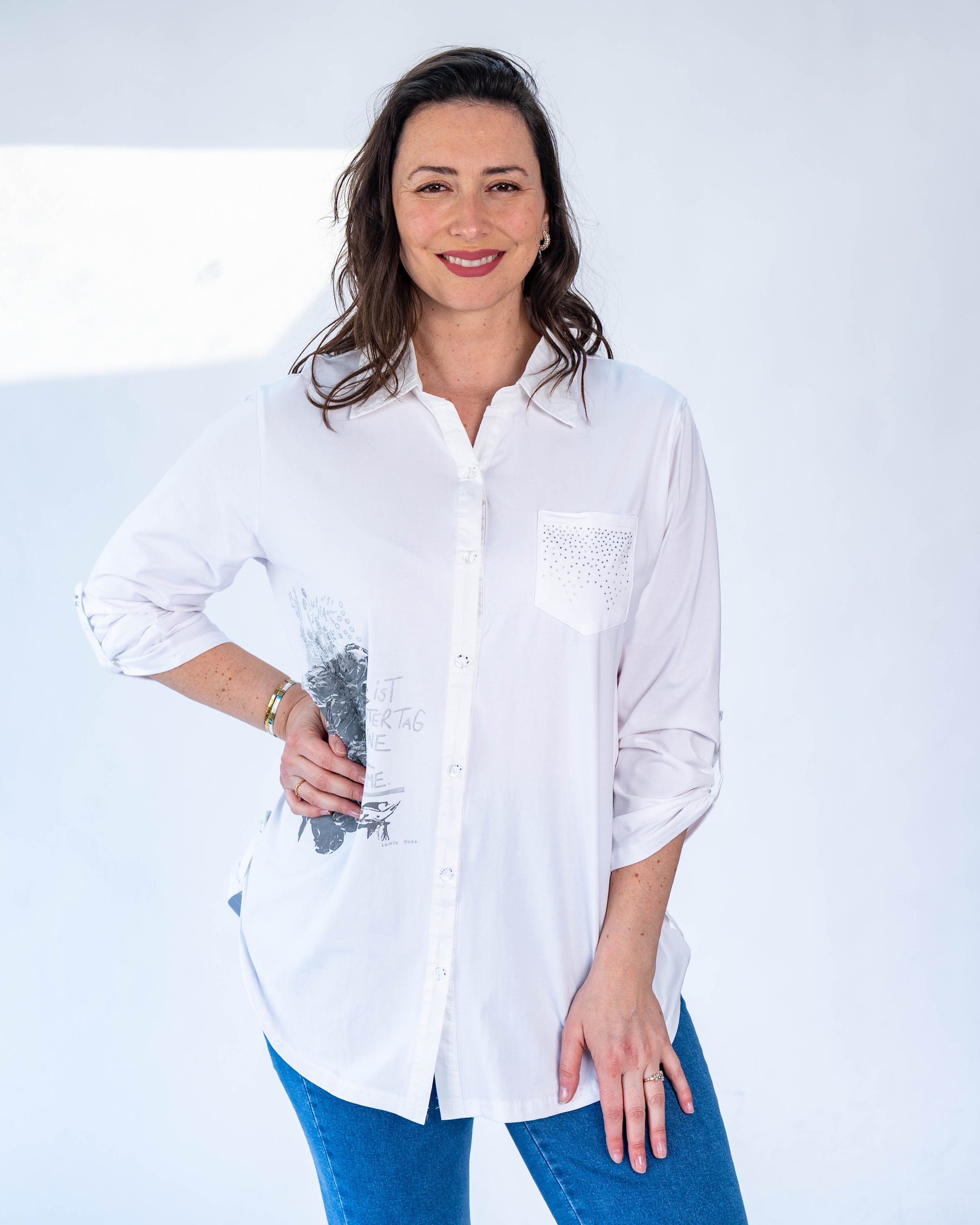 Blusa Alma Duo Brillo/Flor Blanco