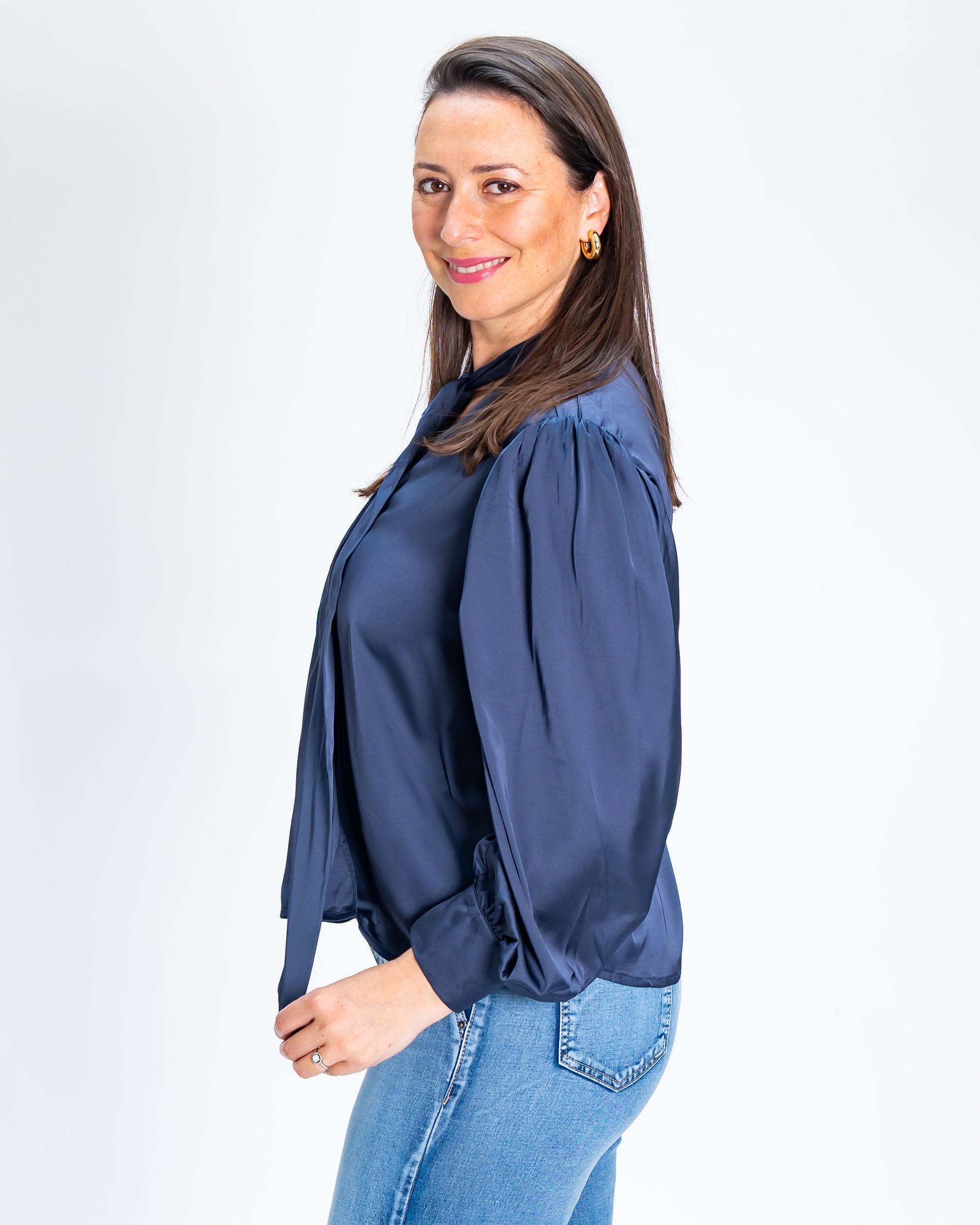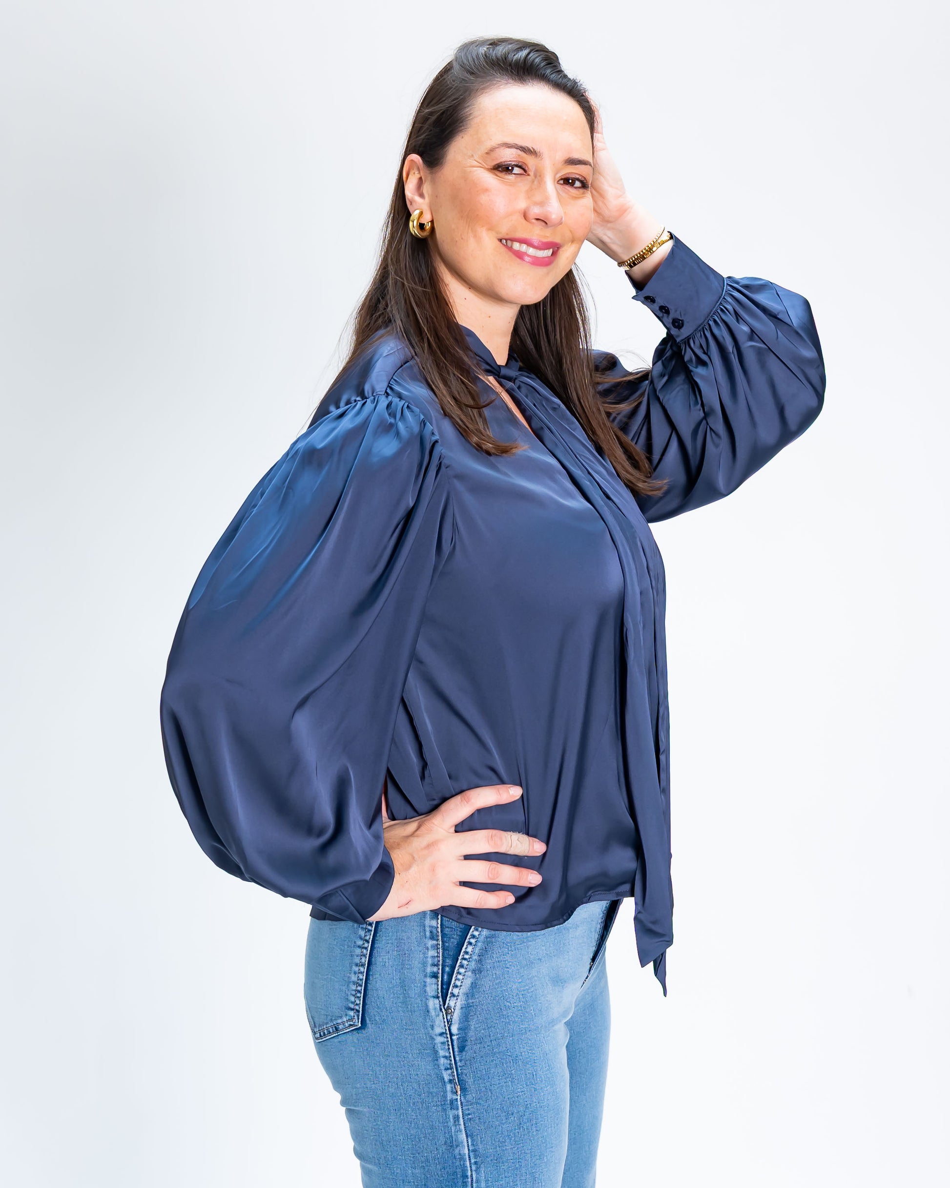 Blusa Marina Con Lazo Azul