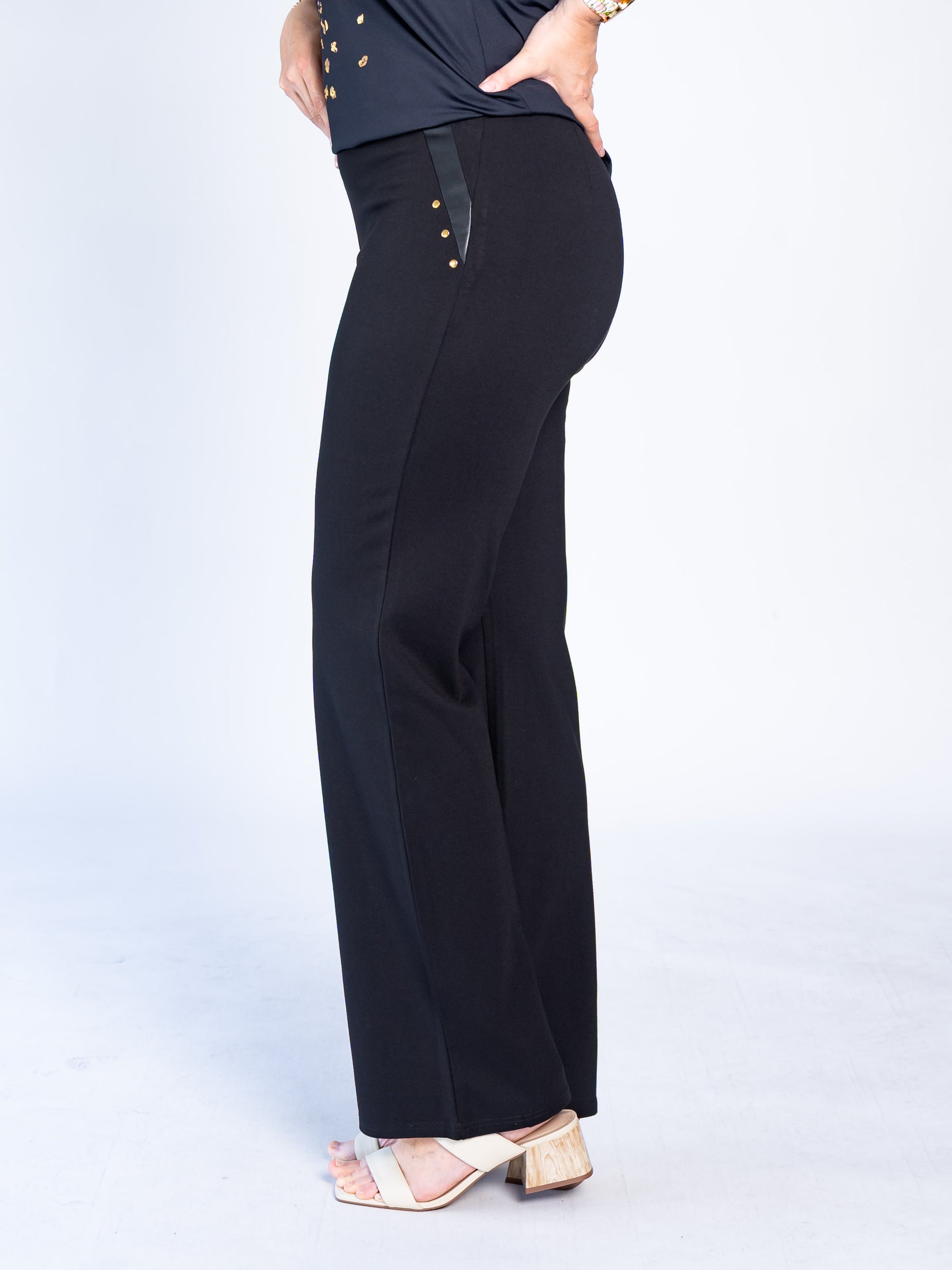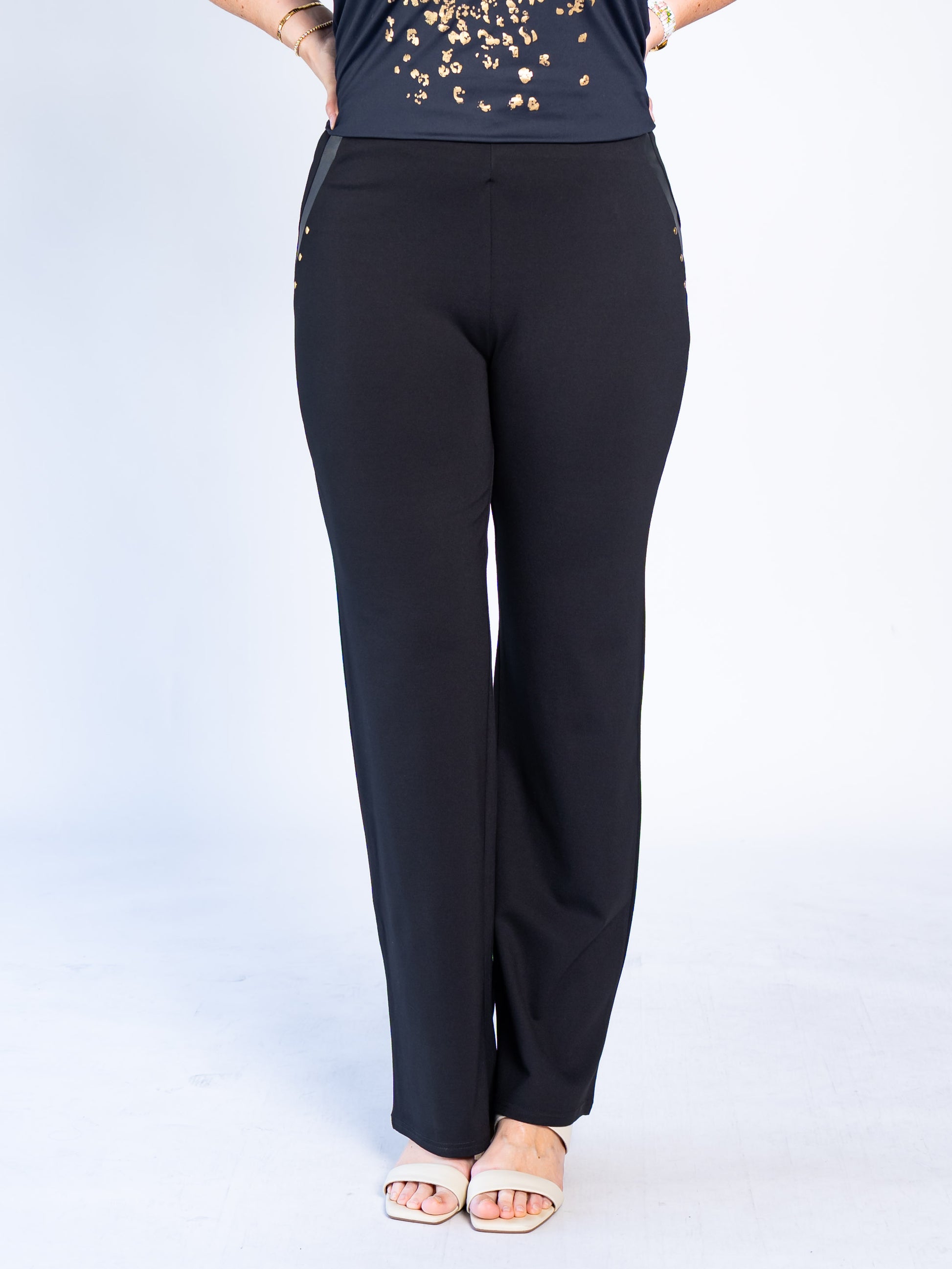 Calza Recta Aplicación Ecocuero Negro