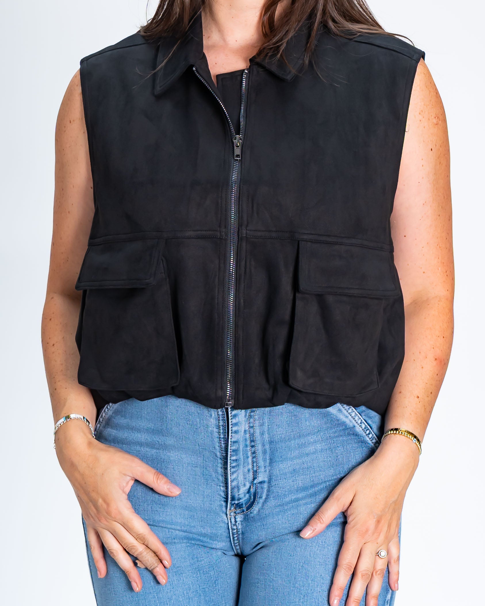Chaqueta Símil Gamuza Sin Mangas Negro