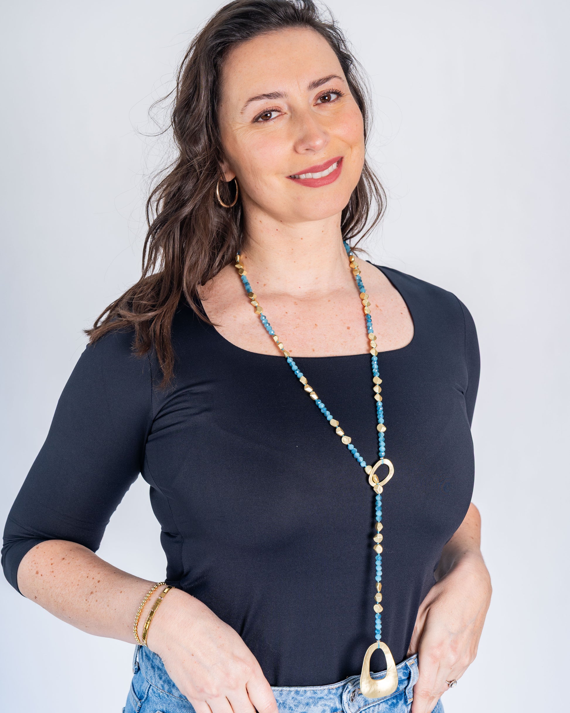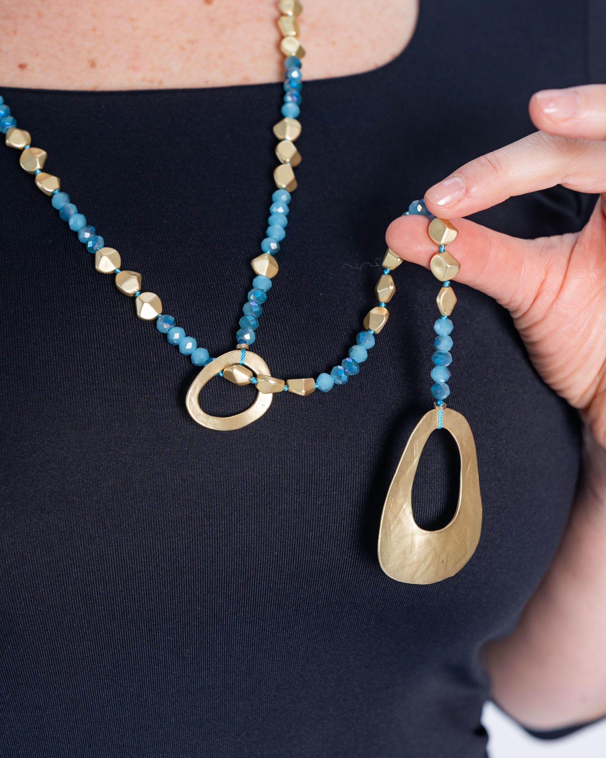 Collar Largo Dorado/Celeste