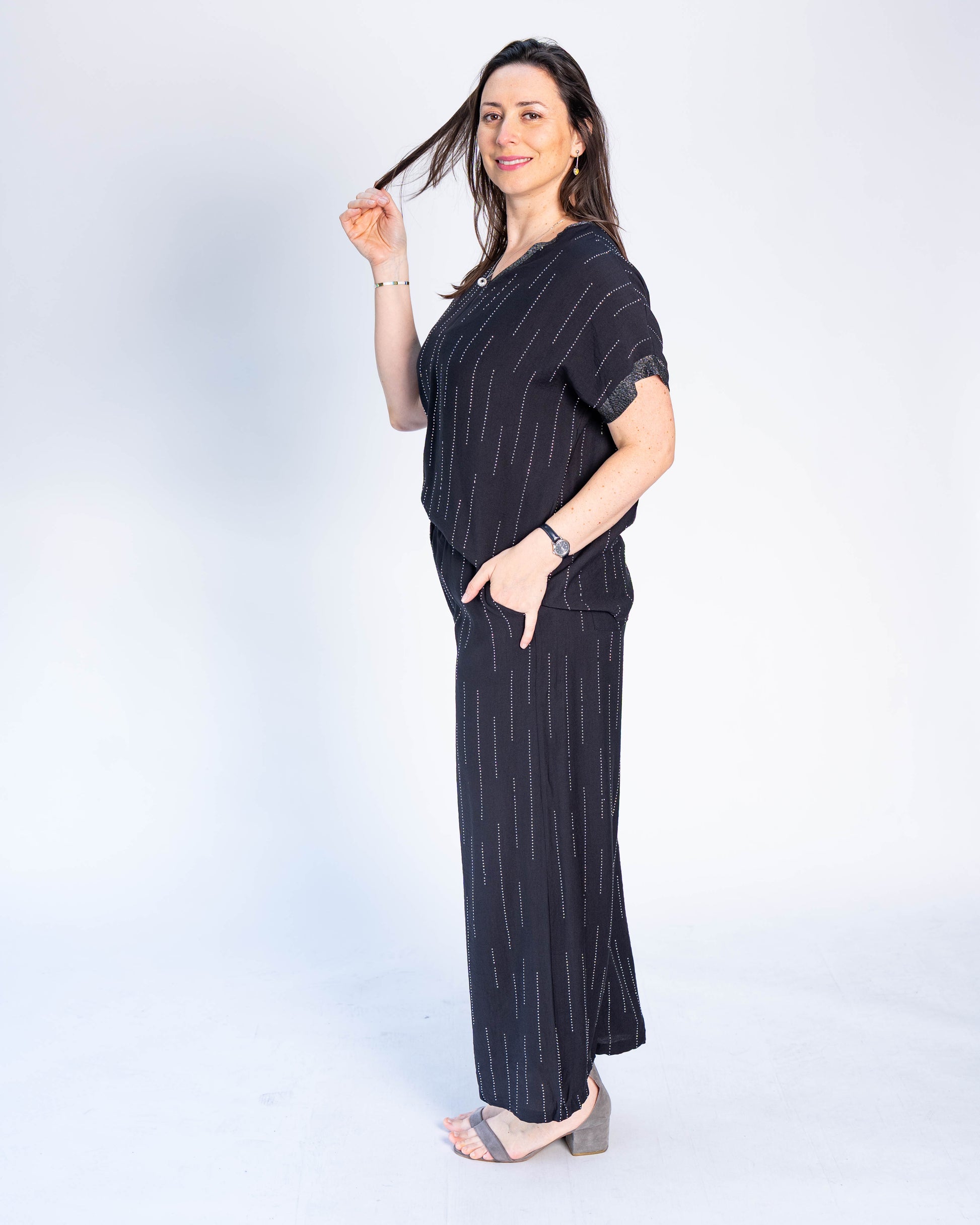 Polera Conjunto Brillos Sara Negro