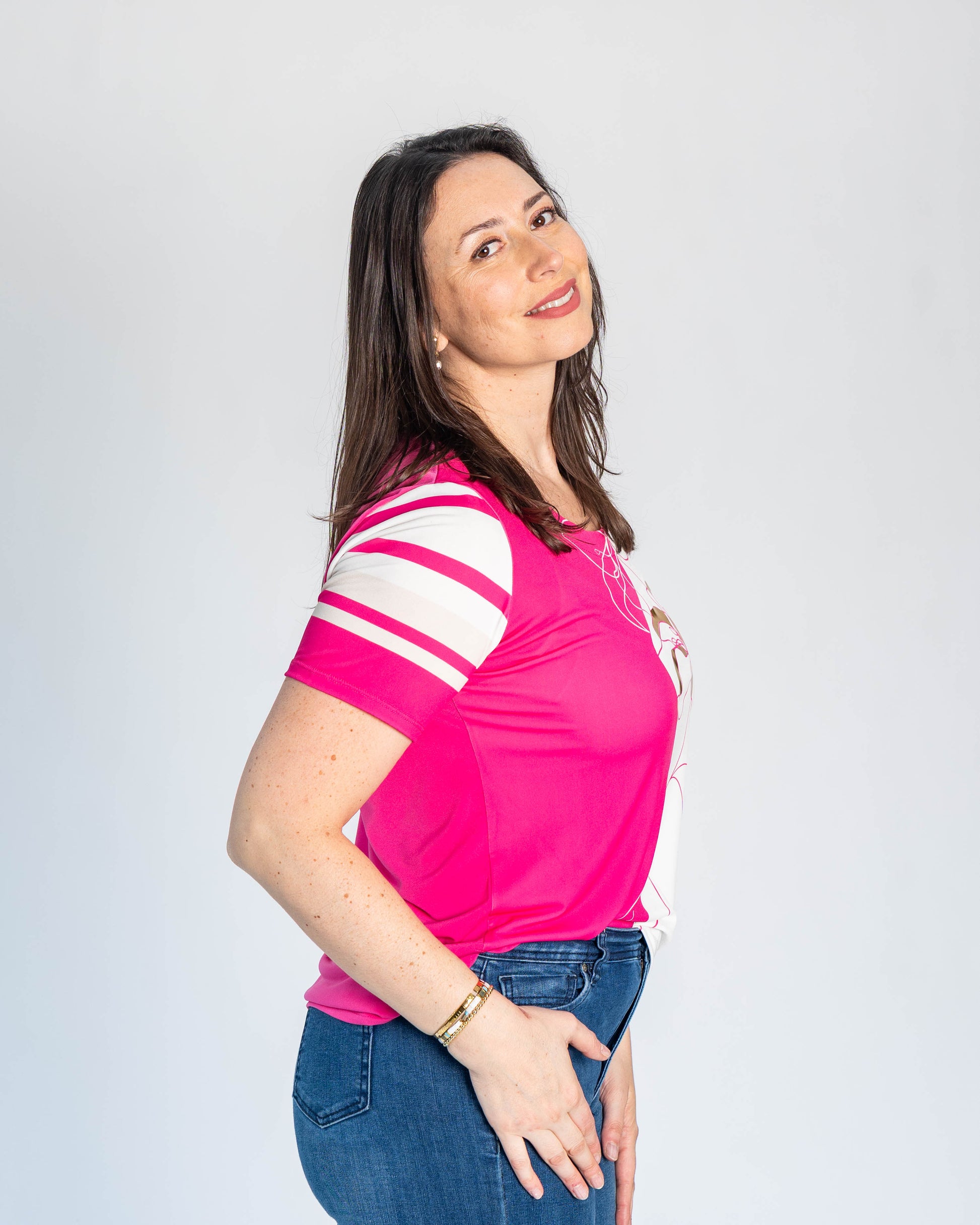 Polera Duo Dorada Fucsia/Blanco