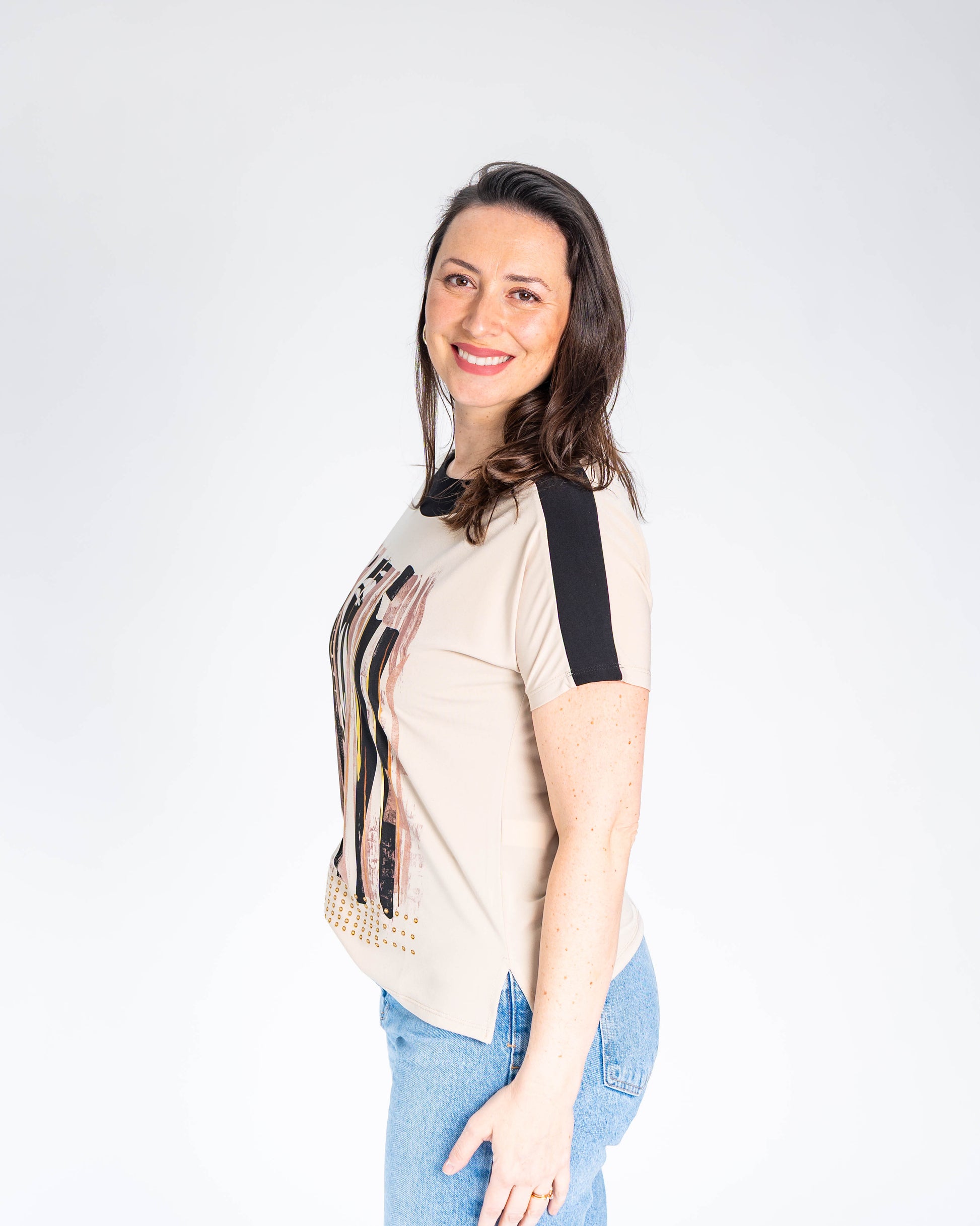 Polera Lucia Líneas Doradas Beige