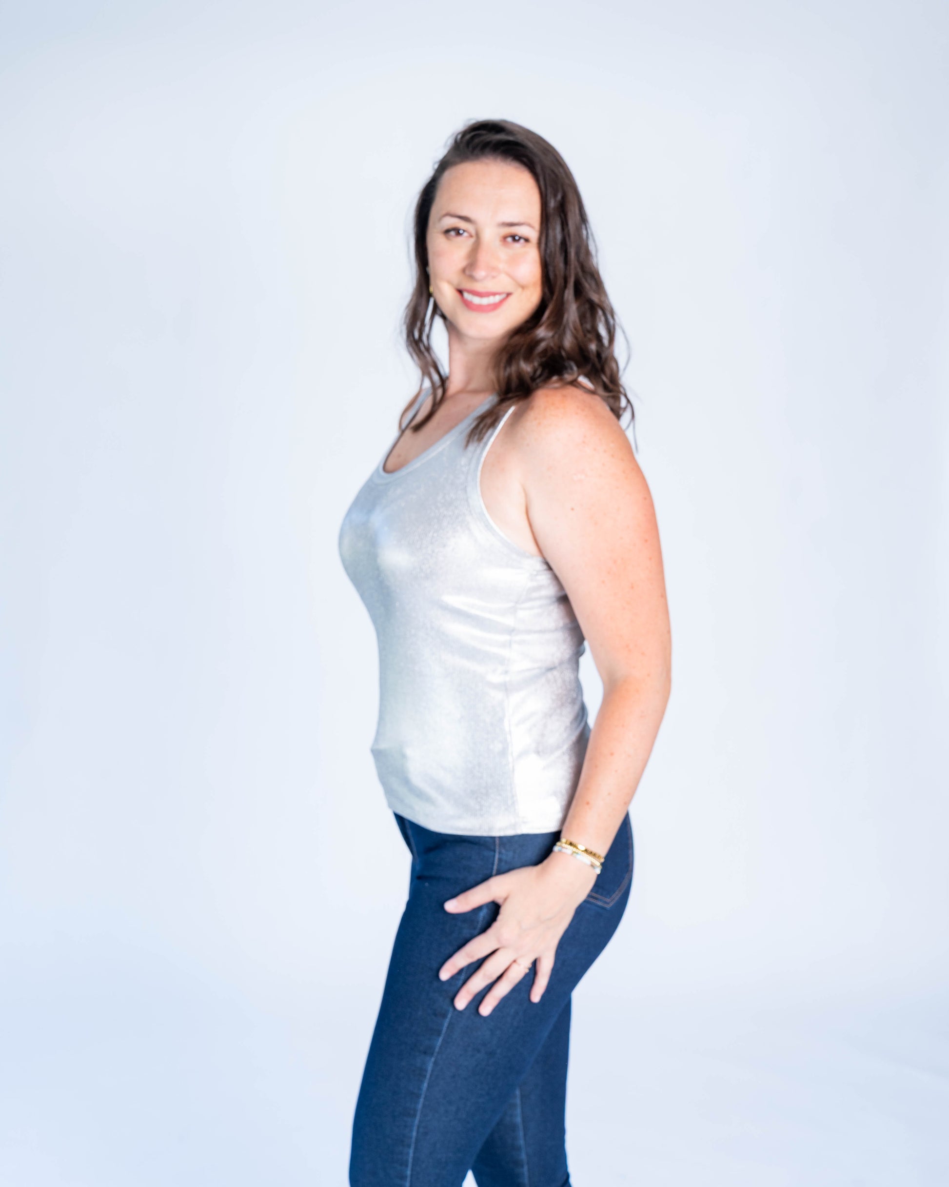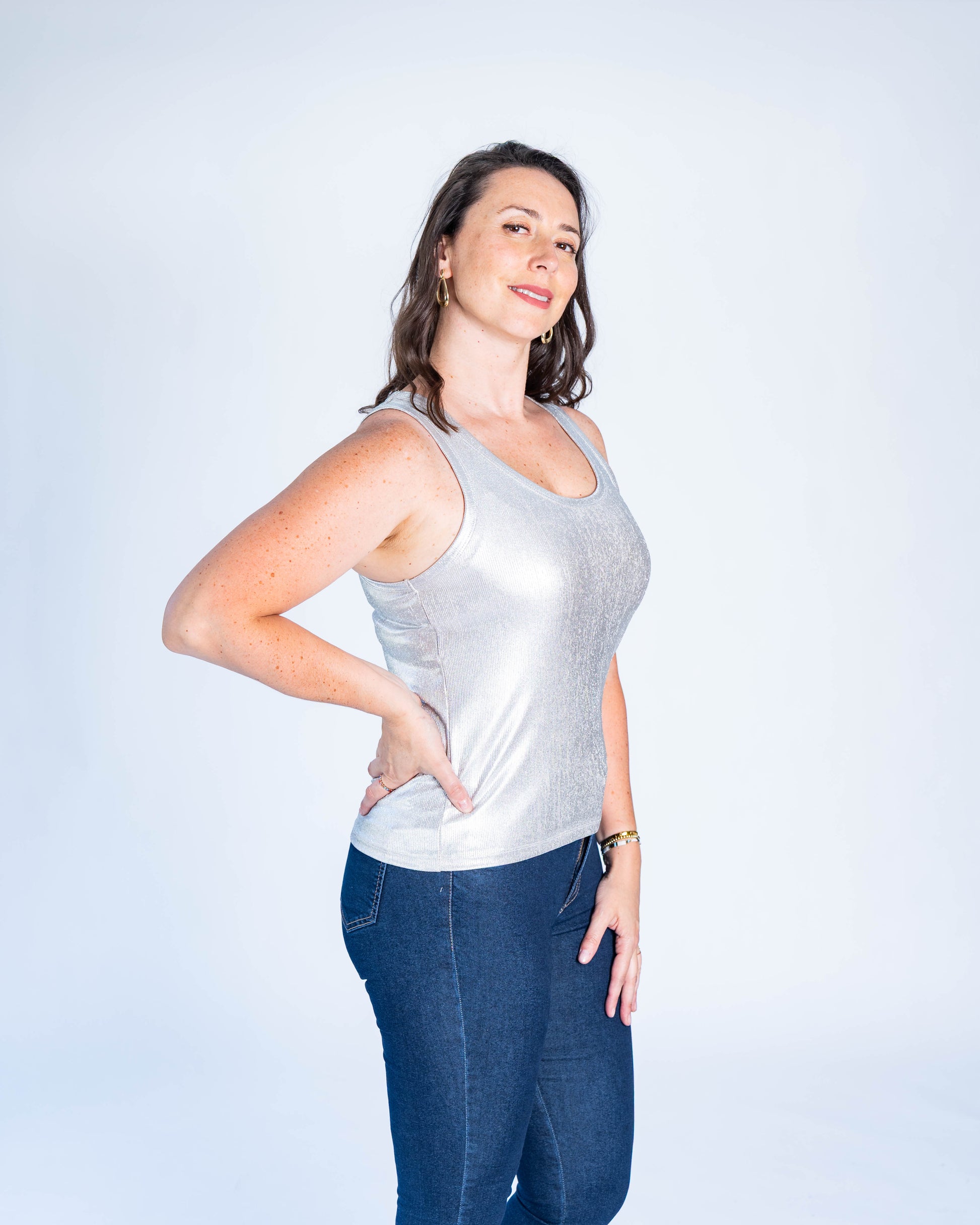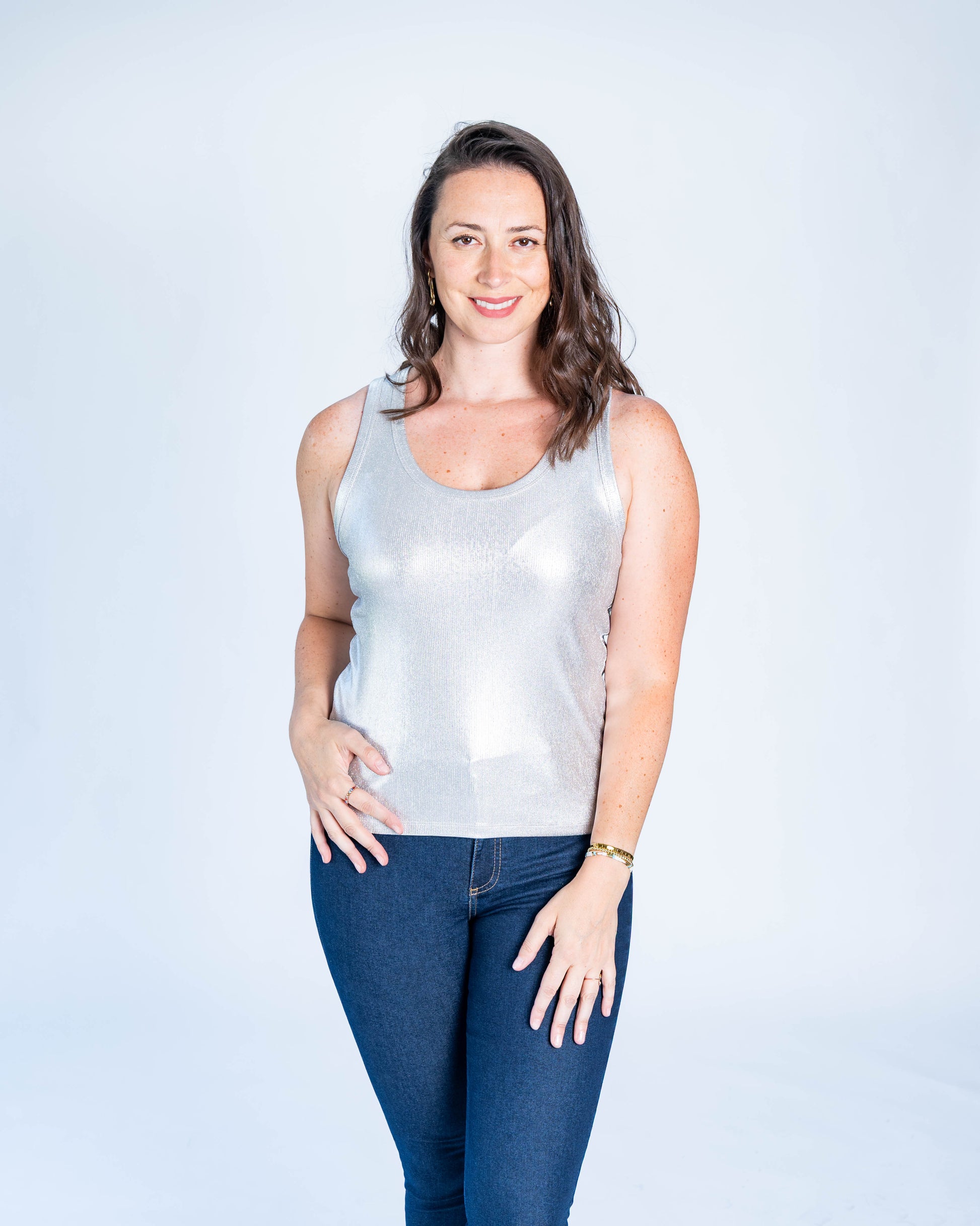 Polera Musculosa Metalizada Plata