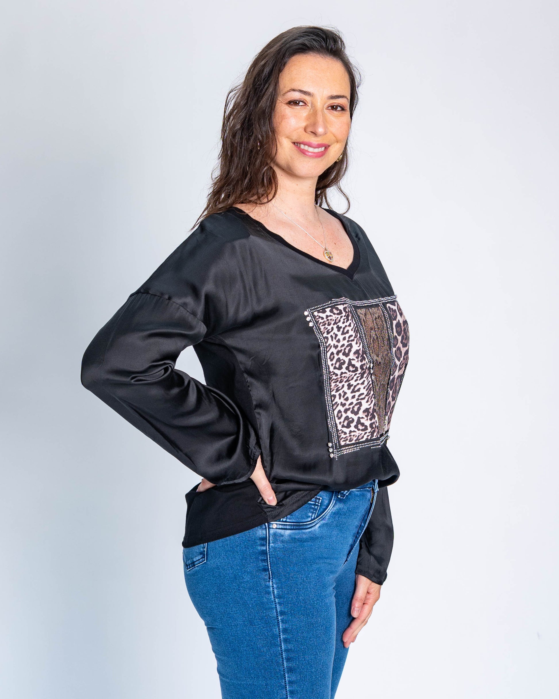 Polera Triple Print Brillo Negro