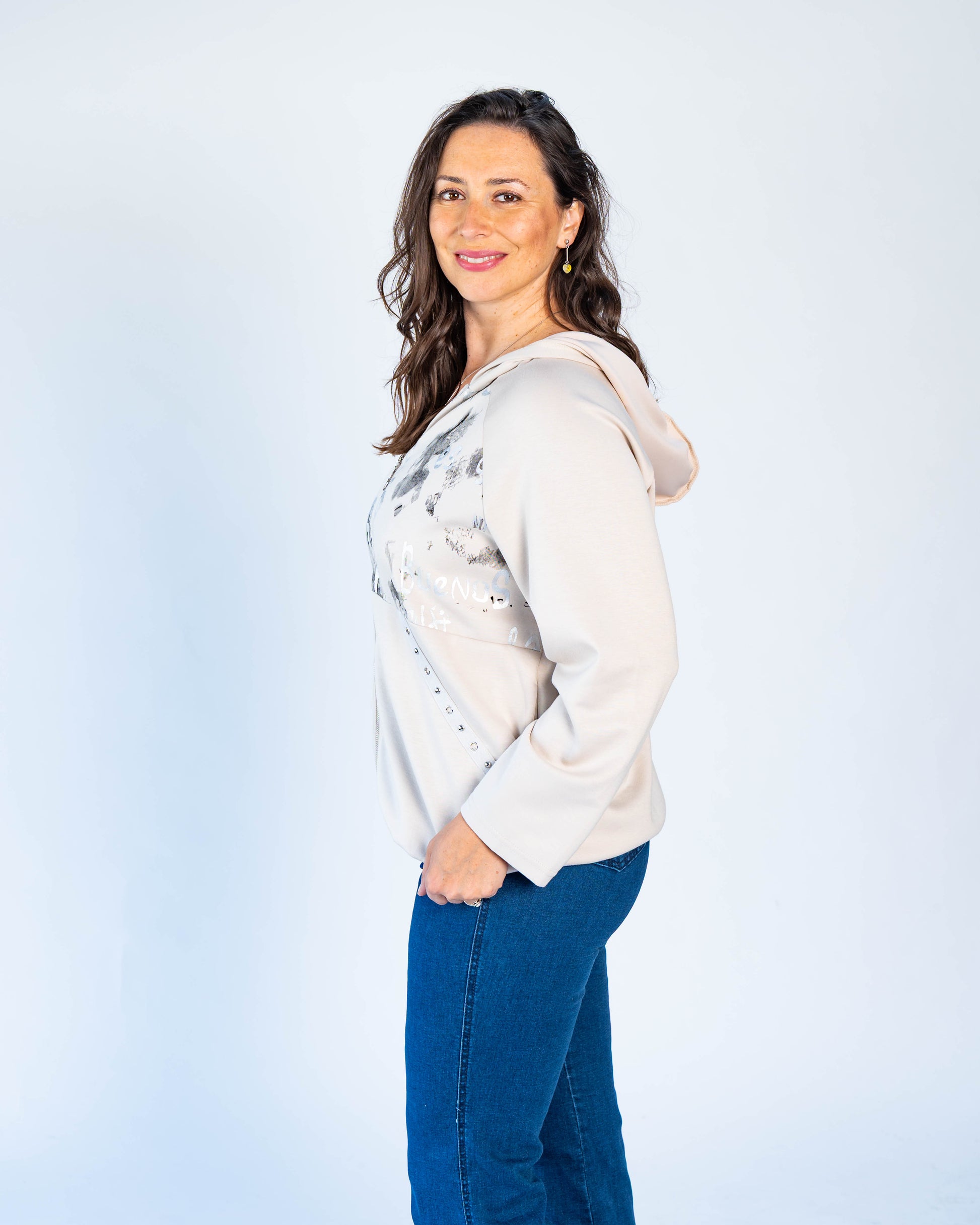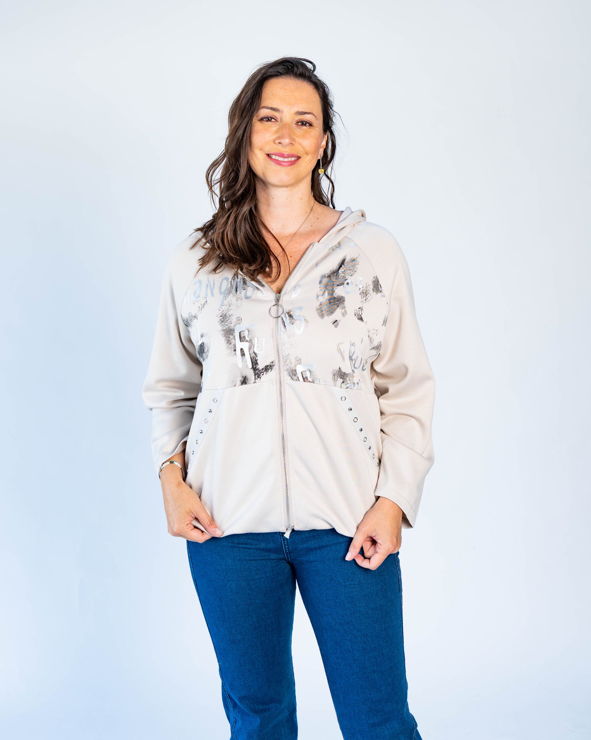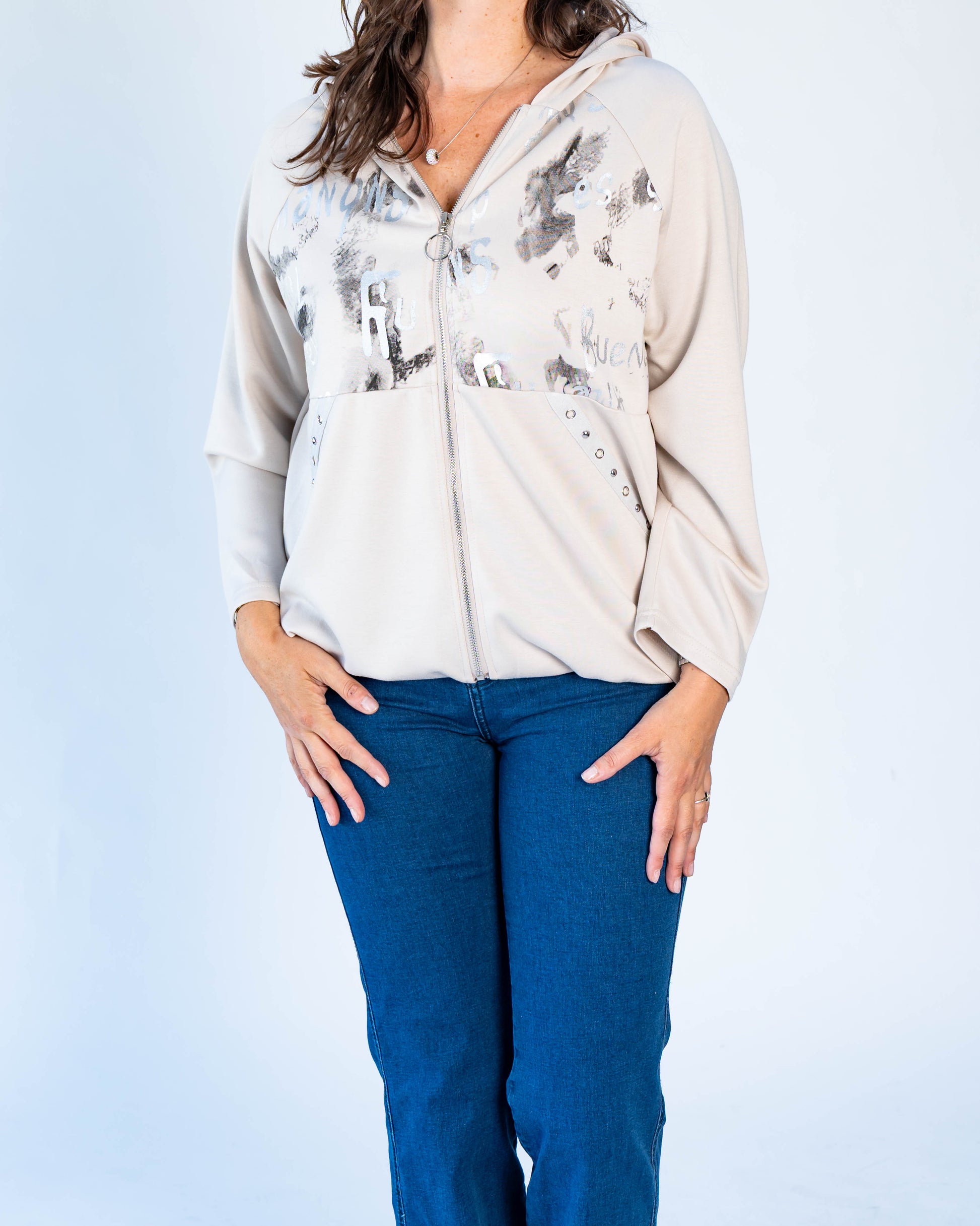 Polerón Letras Plateadas Beige