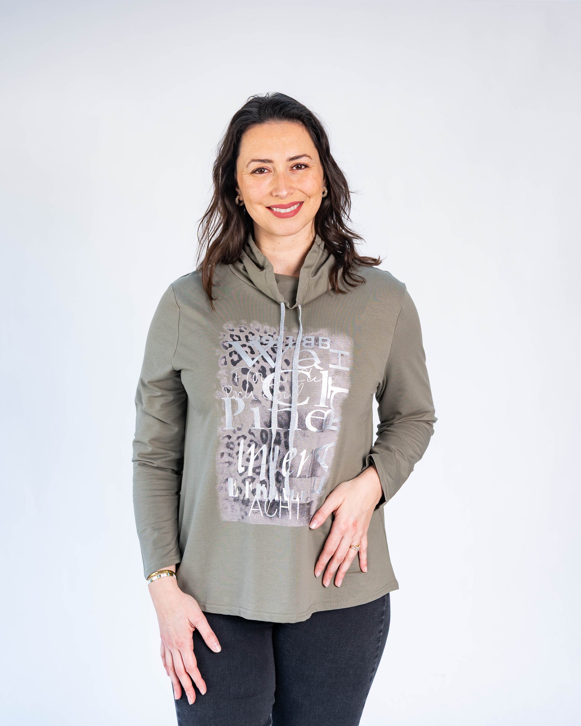 Poleron Letras Plateadas Pili Verde